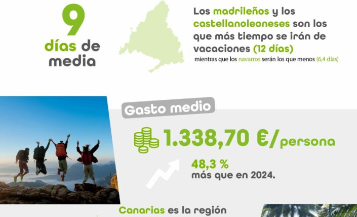 Vacaciones de verano 2025: 9 días, en la playa y con un gasto de 1.339 €, un 48% más que en 2024