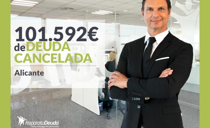 Comunicados Repara tu Deuda cancela 101.592€ en Alicante (Comunidad Valenciana) con la Ley de Segunda Oportunidad Comunicae 13 Abr 2022 El despacho de abogados referente en la Ley de Segunda Oportunidad ha logrado la cancelación de más de 70 millones de euros