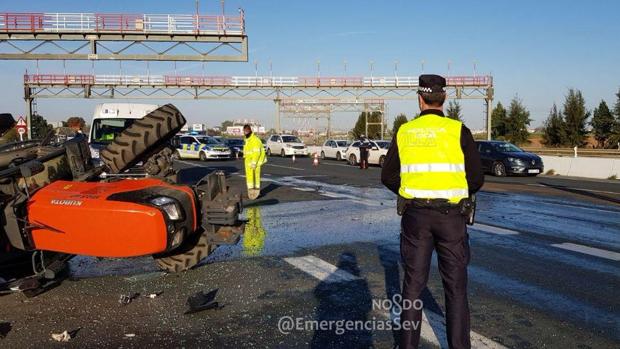 Según ha podido conocer ABC de Sevilla, alrededor de las nueve de la mañana se ha producido una colisión entre un tractor y un turismo en la A4 sentido Madrid, ocasionando un tráfico lento debido a que afecta a los tres carriles. Hay una gran cantidad de aceite esparcido por toda la vía, además de trozos y partes de ambos vehículos que dificultan la circulación.