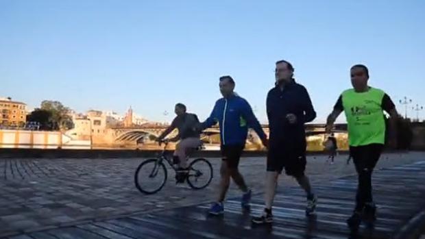 El presidente del Gobierno, Mariano Rajoy, aprovechó la mañana del domingo para hacer deporte por la ribera del Gudalquivir antes de comenzar el trabajo en la última jornada de la convención del PP que se está celebrando estos días en Sevilla.