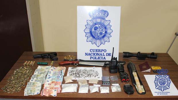 Finalmente, tras solicitar el correspondiente mandamiento de entrada y registro por parte de los agentes, se culminó la operación con el registro de los tres domicilios, en los que se han intervenido 58 gramos de cocaína, 30 gramos de heroína, 180 trozos de hachís con un peso de 63 gramos, dos 'walkie talkies', dos balanzas de precisión, dos puñales estoques de autodefensa y diverso material para elaboración y preparación de la droga.