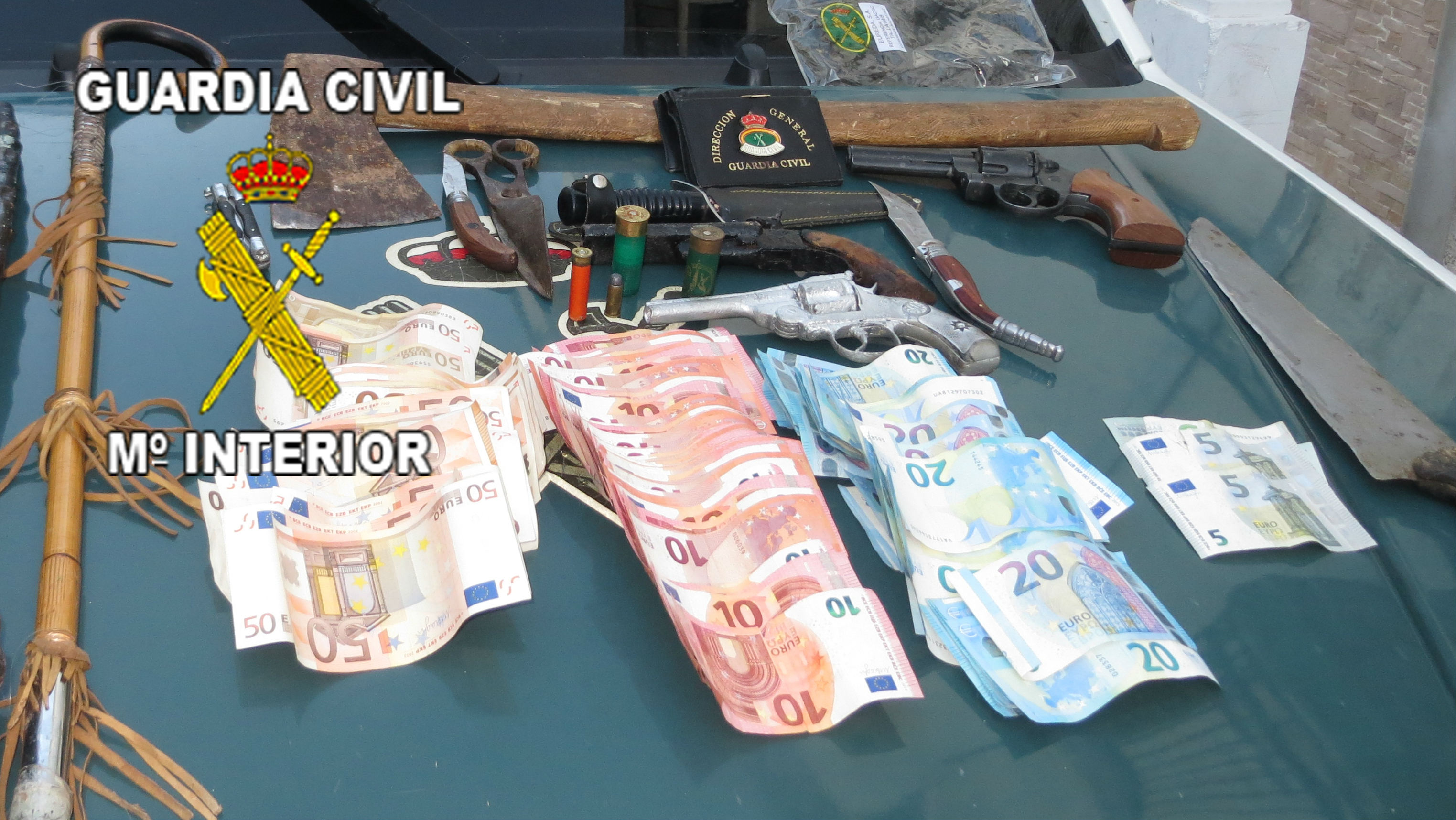 Además de la marihuana, han sido intervenidas durante la operación 26 dosis de cocaína, varias armas blancas, tres armas simuladas, diferente munición, una identificación falsificada de Guardia Civil y un revolver.