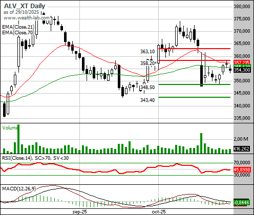 | Comprado | 27/10/2025 | 356,15 | -0,52% | 373,876 | 331,219 |