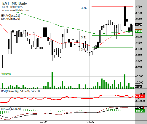 | Vendido | 22/10/2025 | 3,56 | -1,11% | 3,32 | 3,809 |