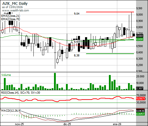 | Vendido | 09/01/2026 | 8,76 | 1,15% | 8,183 | 9,373 |
