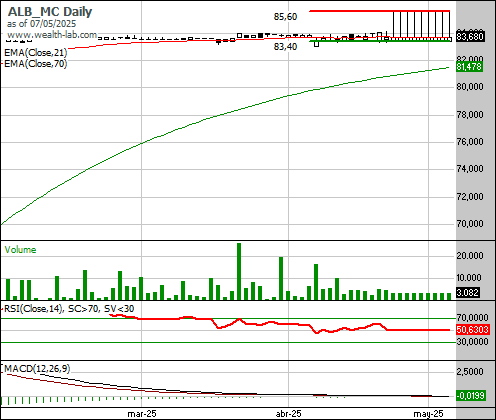 | Vendido | 23/04/2025 | 83,70 | 0,02% | 82,568 | 89,559 |