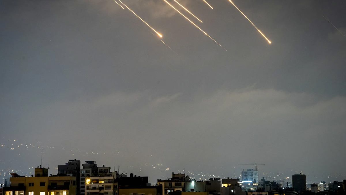 Misiles iraníes e interceptores israelíes iluminan el cielo de Beirut el 14 de junio.