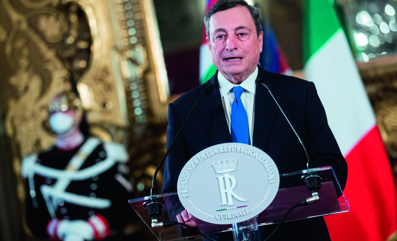 Se diría que la política italiana busca su inspiración en la tradición operística del país. Es sonora, estridente y plagada de giros de guion. La manifestación más reciente de esa teatralidad se ha hecho paten - te durante las últimas semanas y culminará con la constitución de un nuevo gobierno. La novedad no es el relevo prematuro del ejecutivo: van 66 desde que se proclamó la república en 1947, un promedio de uno cada 14 meses. El viraje argumental consiste en que el llamado a formarlo es Mario Draghi (73 años), cuya reputación se resume en la frase «whatever it takes» («lo que sea necesario»), pronunciada en 2012 para poner fin a la tormenta financiera que amenazaba al euro.