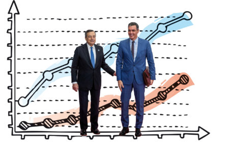 EDITORIAL ● Desde que el expresidente del BCE llegó al poder en Italia, la rentabilidad de la bolsa duplica la del IBEX. Draghi tranquiliza; Sánchez, todo lo contrario