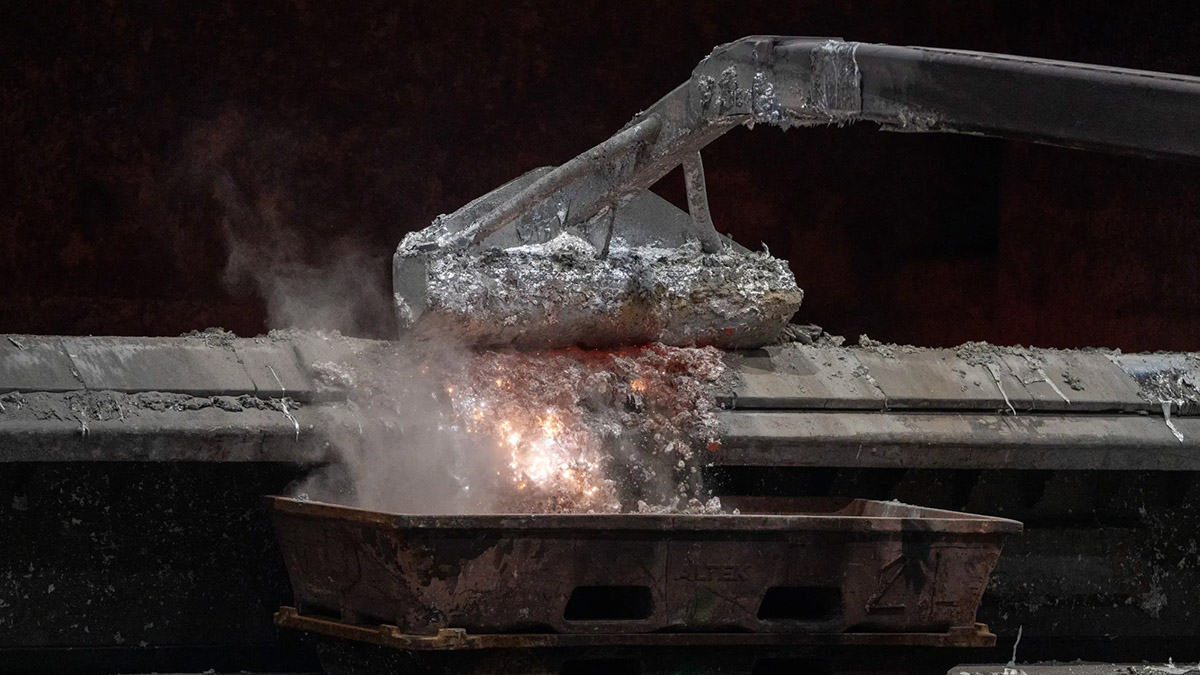 Aluminio fundido en la fundición de una planta cerca de Dunkerque, Francia. La UE aún mantiene aranceles del 50 % sobre las exportaciones de acero y aluminio.