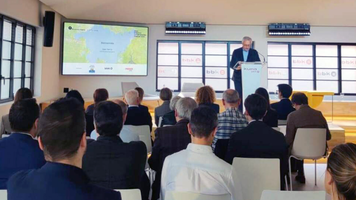 El editor de Economía Digital y la revista Inversión, Juan García, durante la presentación de la tercera edición del Atlas de la Empresa Comprometida de Euskadi.
