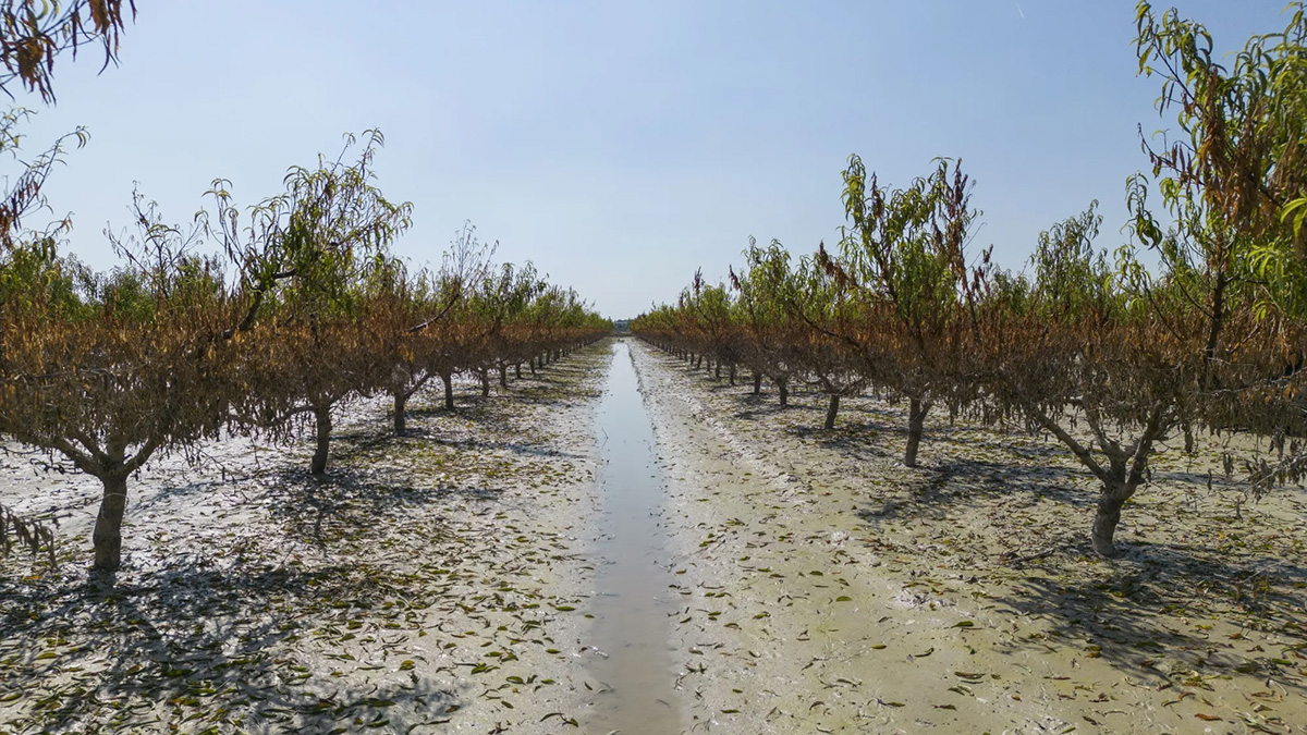 Perales tras las inundaciones en una granja en Italia.