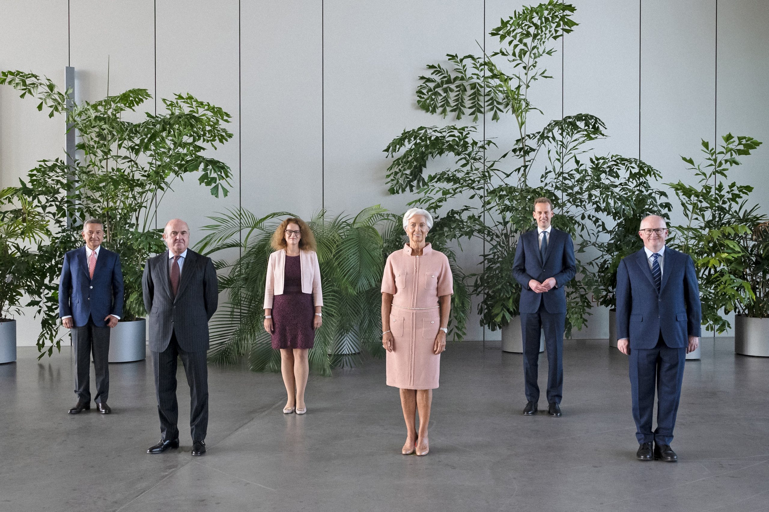 Group photo of the Executive Board of the ECB (f.l.t.r.: Fabio Panetta, Vice president Luis de Guindos, Isabel Schnabel, ECB President Christine Lagarde, Frank Elderson, Philip Lane), Frankfurt, 21 September 2021