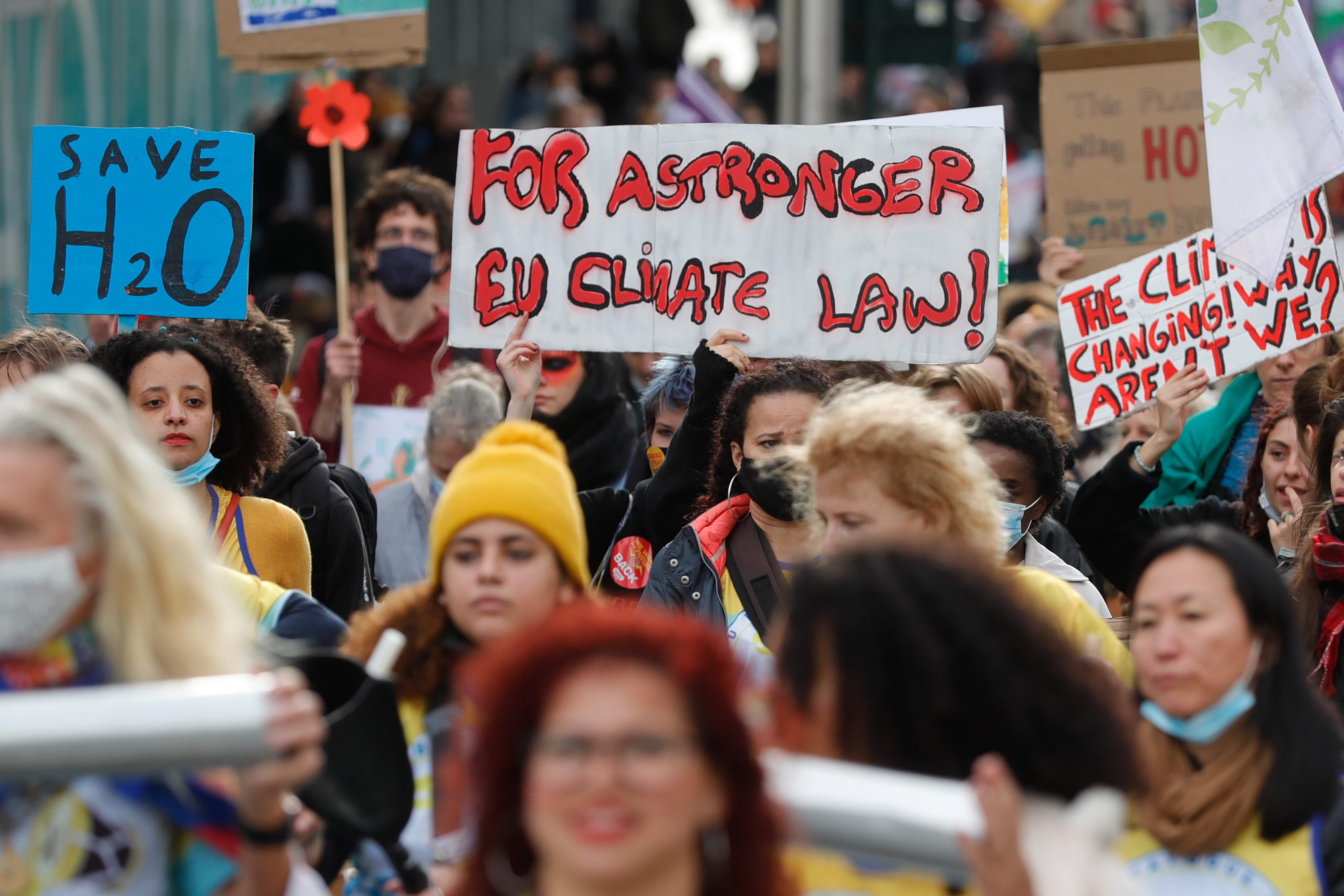 Brussels (Belgium), 31/10/2021.- Thousands of people gather to call for urgent measures to combat climate change on the occasion of the Glasgow COP 26 conference during a demonstration in Brussels, Belgium, 31 October 2021. (Protestas, Bélgica, Estados Unidos, Bruselas) EFE/EPA/STEPHANIE LECOCQ