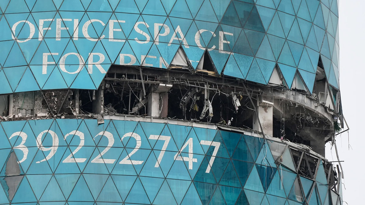 Un edificio dañado tras un ataque con drones en el distrito de Seef, Manama, Bahréin, el 10 de marzo.