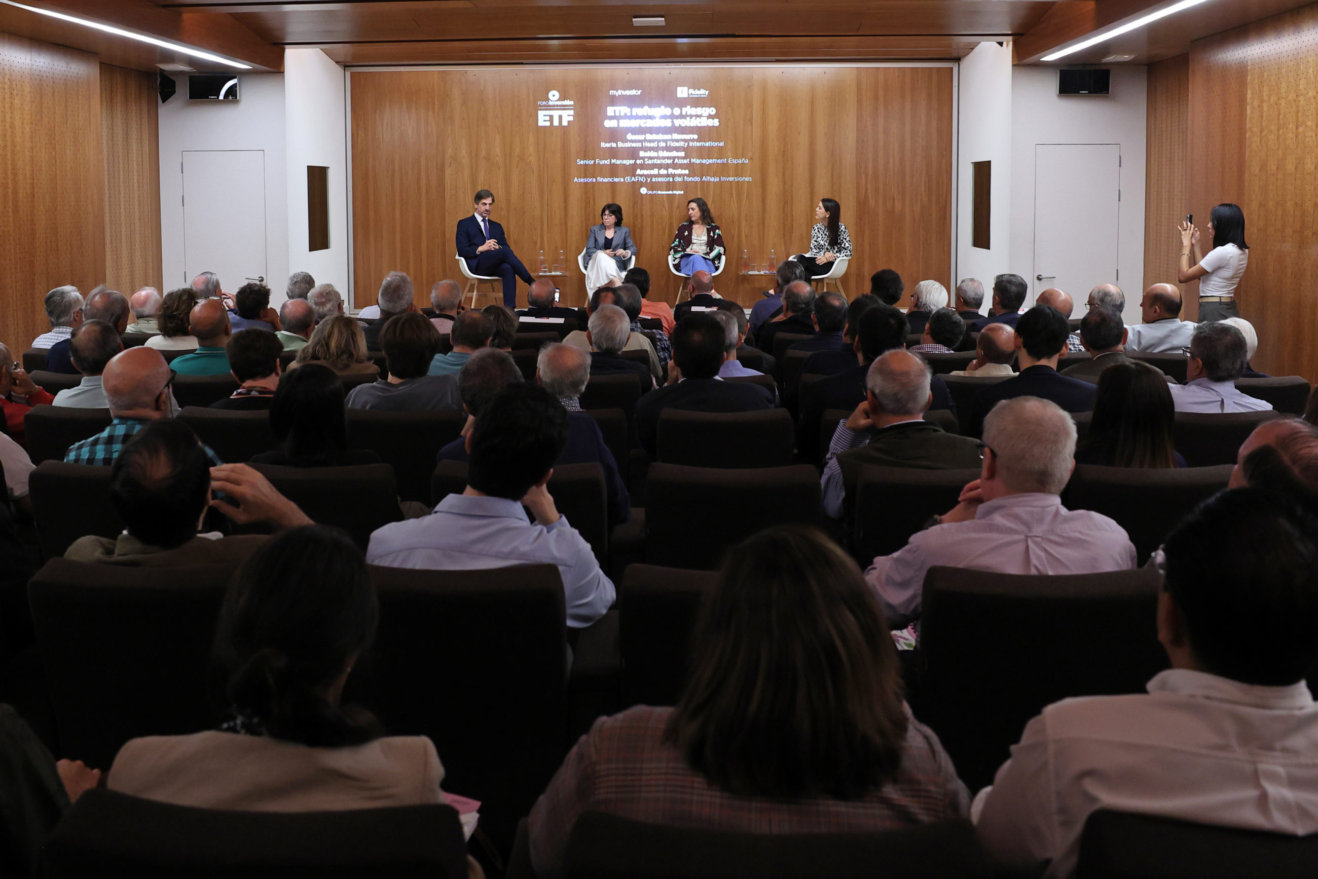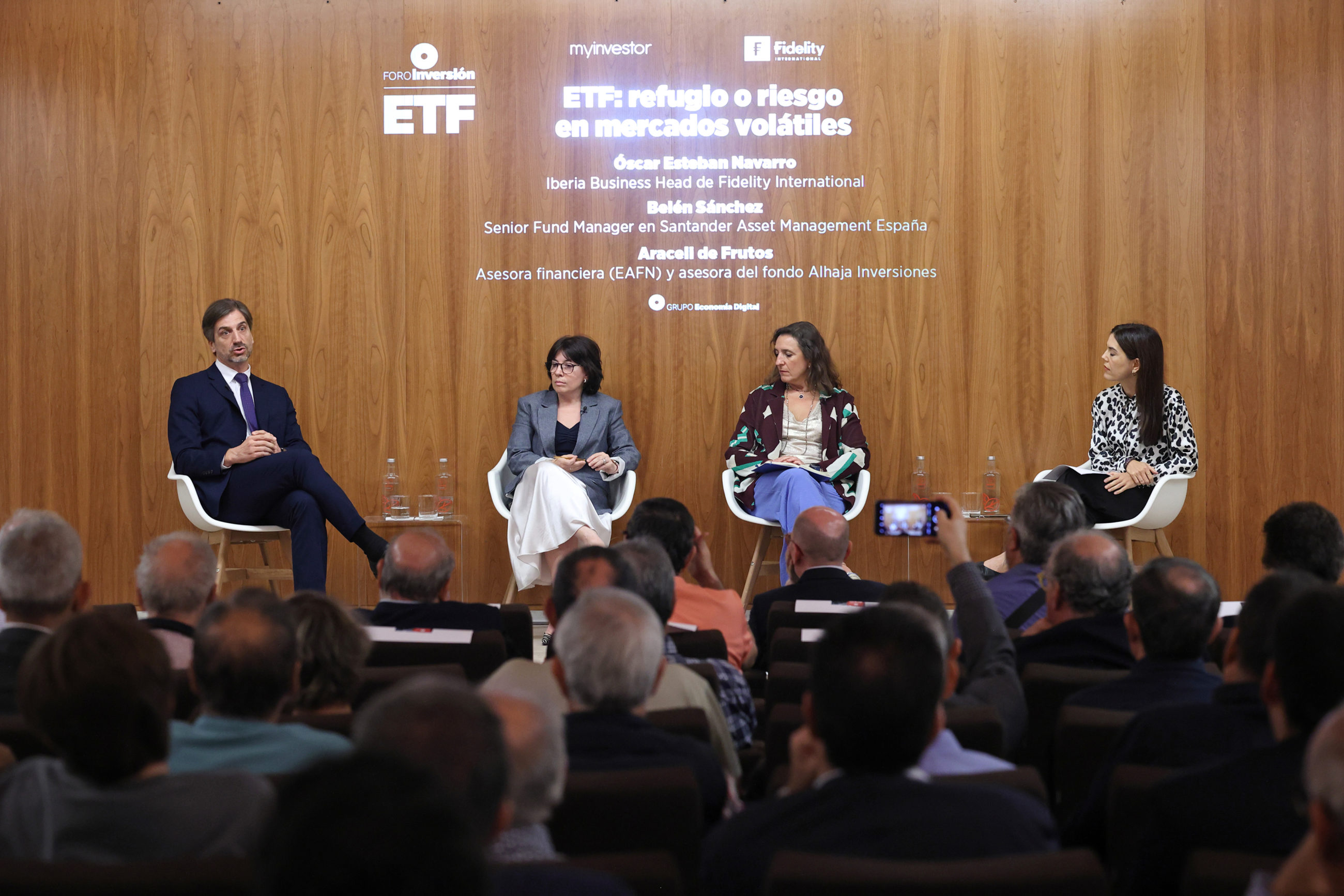 El debate central reunió a Óscar Esteban (Fidelity International), Araceli de Frutos (EAFN) y Belén Sánchez (Santander AM España), en un diálogo abierto sobre el papel de los ETF en entornos de alta volatilidad.