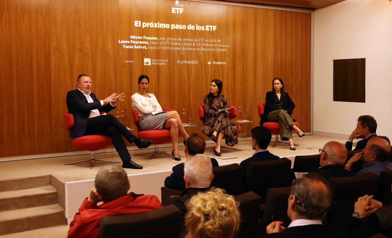 Los próximos pasos a abordar por el sector del ETF fueron debatidos por Olivier Paquier, jefe global de ventas ETF en AXA IM; Laure Peyranne, jefa de ETF en Iberia, Latam y US offshore en Invesco; y Tania Salvat, jefa de inversión institucional en Blackrock España.