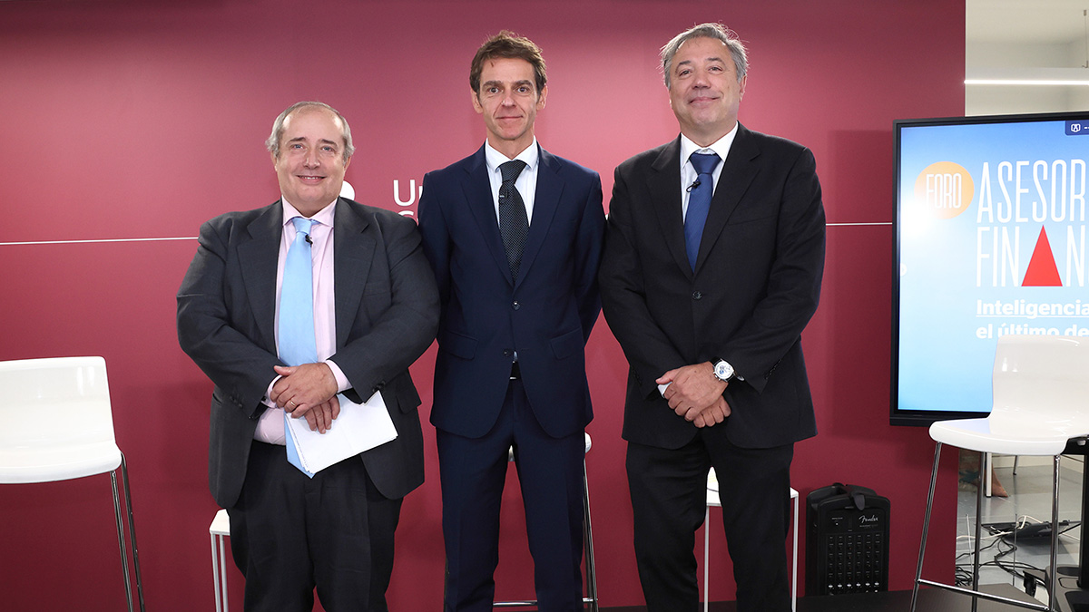 El presidente de Economistas Asesores Financieros, Íñigo Peña, moderó el debate principal del foro, centrado en responder si la IA es un trance o una herramienta para el asesor. Participaron el pionero en la introducción de esta tecnología en las family offices, Alfonso Escárate, y el profesor Agustín Asensio.