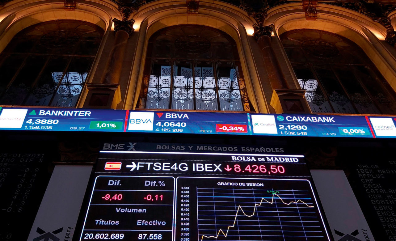 MADRID, 05/01/2021.- El cambio de tendencia en la cotización de la mayoría de los grandes valores permitía que la bolsa española redujera al 0,11 % las pérdidas de la apertura, provocadas en gran medida por la bajada del 1,5 % de Wall Street en la víspera, según datos del mercado. A las 9.15 horas, el índice de referencia del parqué nacional, el IBEX 35, retrocedía 8,6 puntos, ese 0,11 %, hasta 8.090,6 puntos. EFE/Altea Tejido