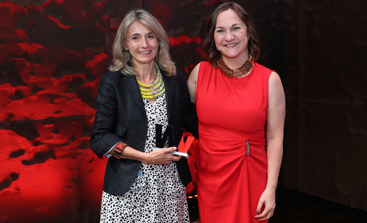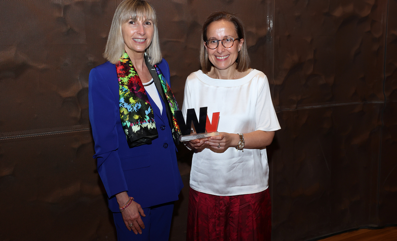 Isabel Abellán, directora de Sostenibilidad de Banc Sabadell; y María Ángeles León, fundadora de Global Social Impact y ganadora del premio WV 2025 en la categoría de Finanzas Responsables