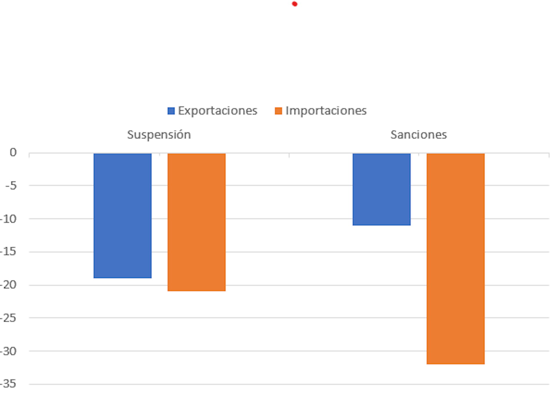 La suspensión voluntaria de exportaciones supuso una reducción del -19 por ciento de las ventas de España a Rusia, mientras que las sanciones contribuyeron en un -11  por ciento.